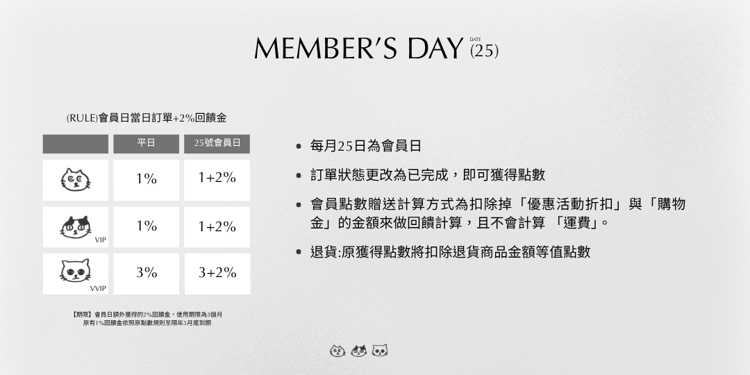 【期限】會員日額外獲得的2%回饋金,使用期限為3個月